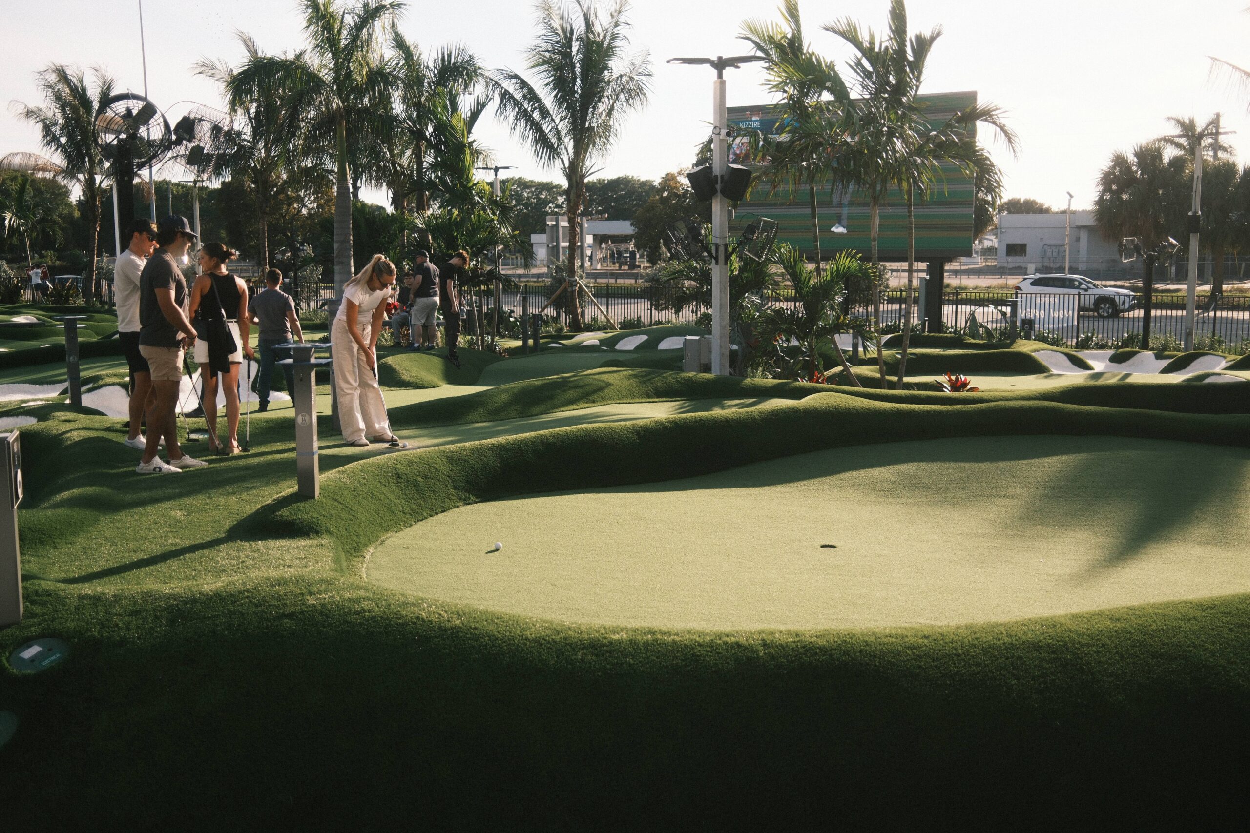 Players (of all ages) putt on the custom-designed courses at PopStroke.